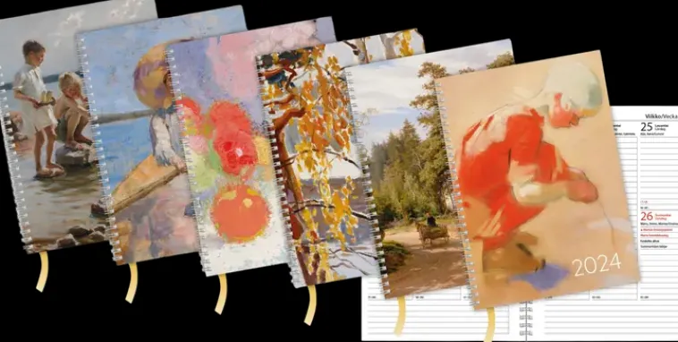 Lajitelma Ateneumin Taidekokoelmista; Kätevä Pieni Koko; 6 Eri Taidekantta; Merkkinauha; Laadukkaat Tukevat Kannet; Kaksikielinen Nimipäivin (Suomi-Ruotsi); Avainlipputuote