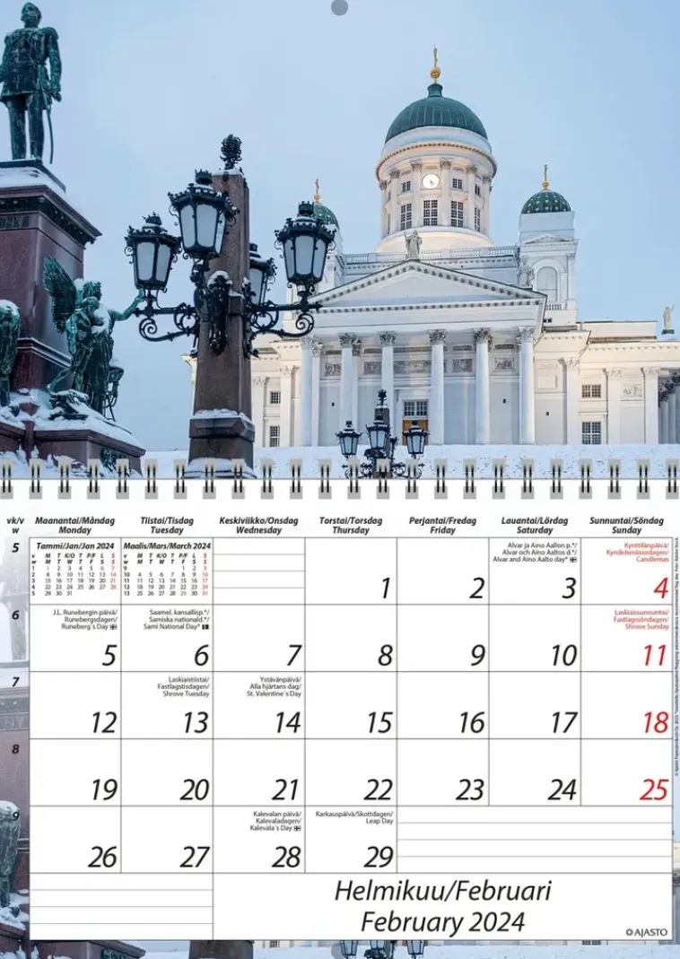 Ajasto Kalenterit>Seinakalenteri Suomi A5