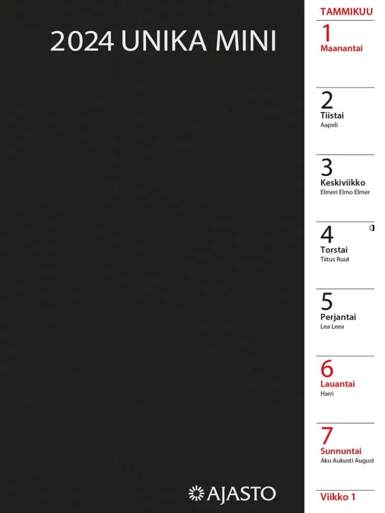 Ajasto Kalenterit>Taskukalenteri Unika Mini, Musta