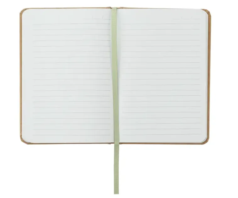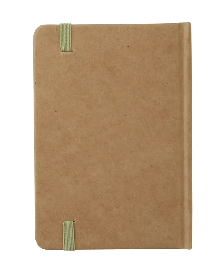 Kierrätetystä Paperista Valmistettu Muistikirja Kuminauhasuljennalla. A6-Kokoinen Muistikirja, Jossa 96 Viivoitettua Sivua. Kirjan Mitat: 10,5 X 14,8 X 1 Cm.