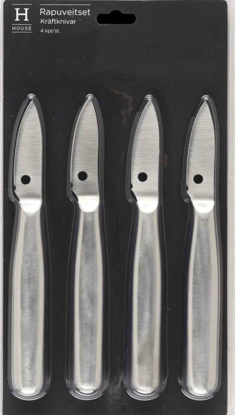 Rapuveitsisetti Mattaharjattua Ruostumatonta Terästä. Pakkaus Sisältää 4 Veistä. Astianpesukoneen Kestävä. Kätevä Apuväline Jokavuotisiin Rapujuhliin.