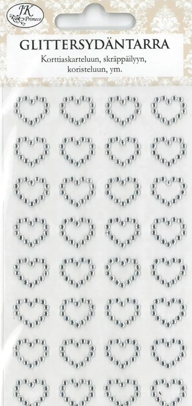Pakkaus Sisältää Yhden Arkin Glittersydäntarroja, Jotka Sopivat Mm. Korttiaskarteluun, Koristellun Ja Skräppäilyyn.