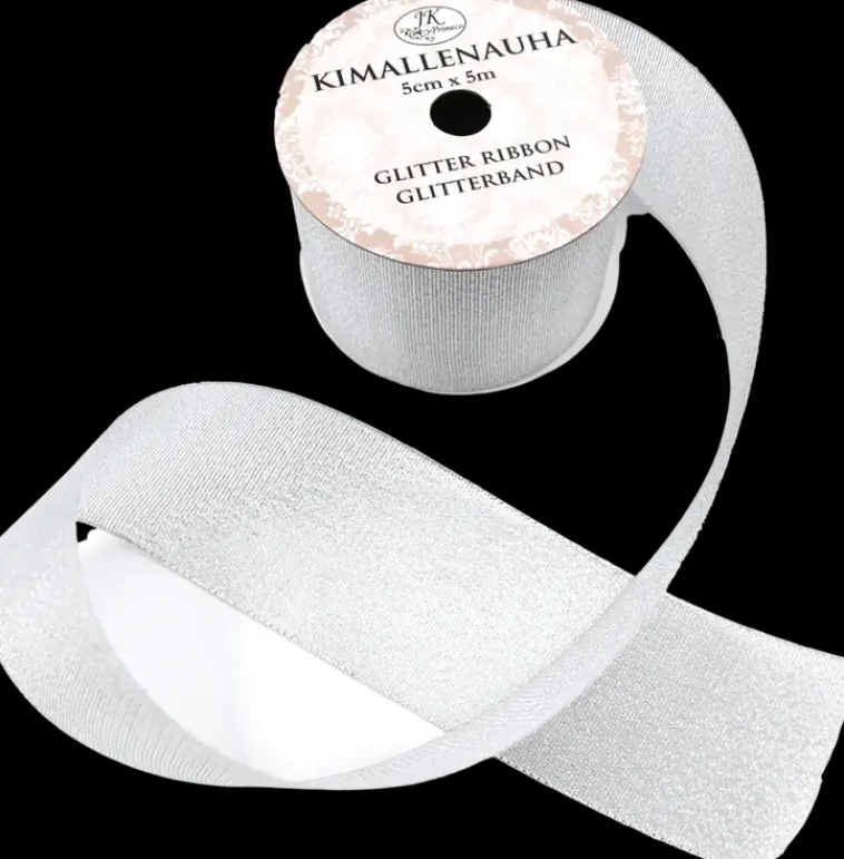 Kimallenauha Paketointiin, Askarteluun Ja Koristeluun. Pakkaus Sisältää 5 Metriä Kankaista Nauhaa, Jonka Leveys On 5Cm.