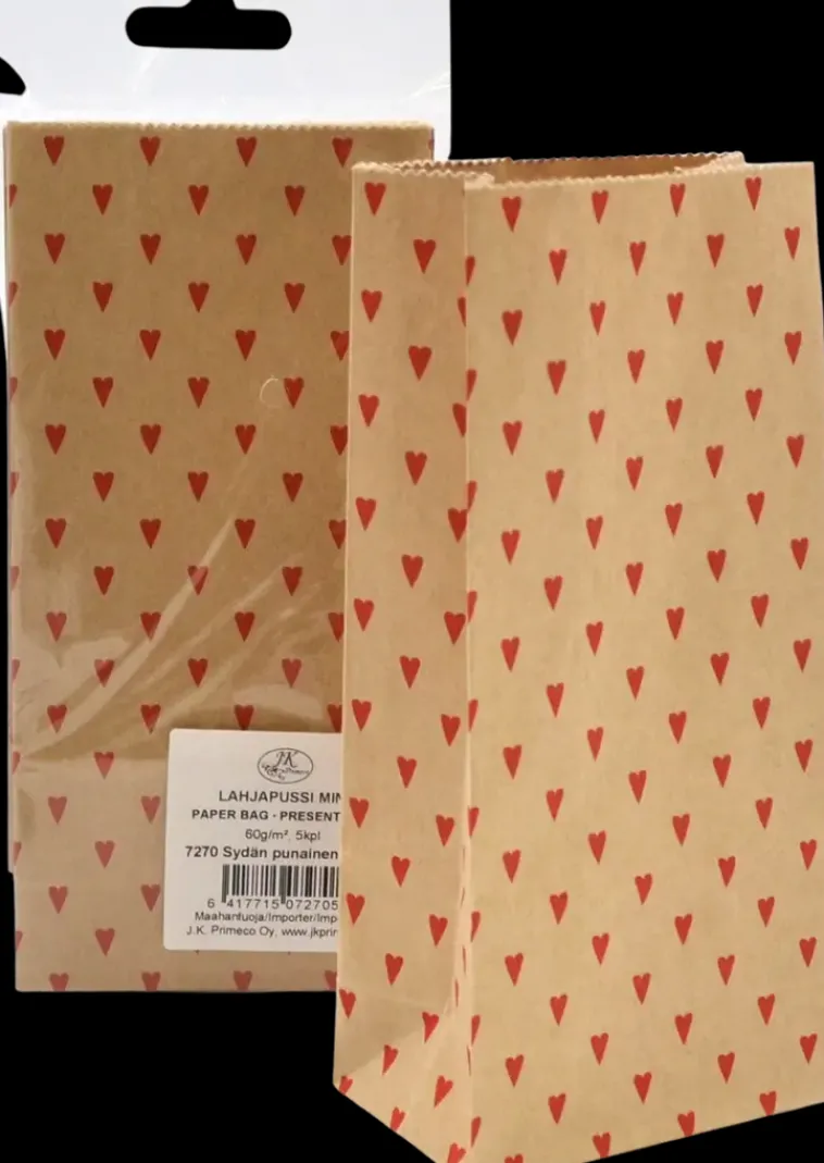 J.K. Primeco Askartelutarvikkeet<Lahjapussi Mini Sydan Punainen Natur 5 Kpl
