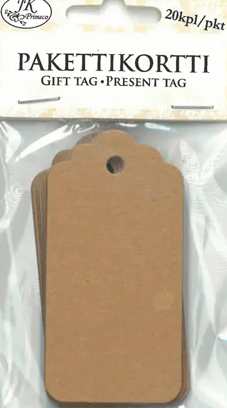 J.K. Primeco Askartelutarvikkeet>Pakettikortti Ruskea 20Kpl