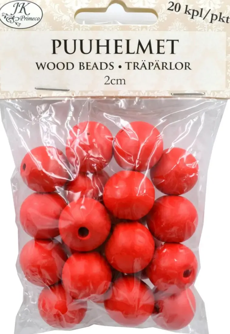 J.K. Primeco Askartelutarvikkeet>Puuhelmet Punainen 2Cm 20Kpl/Pkt