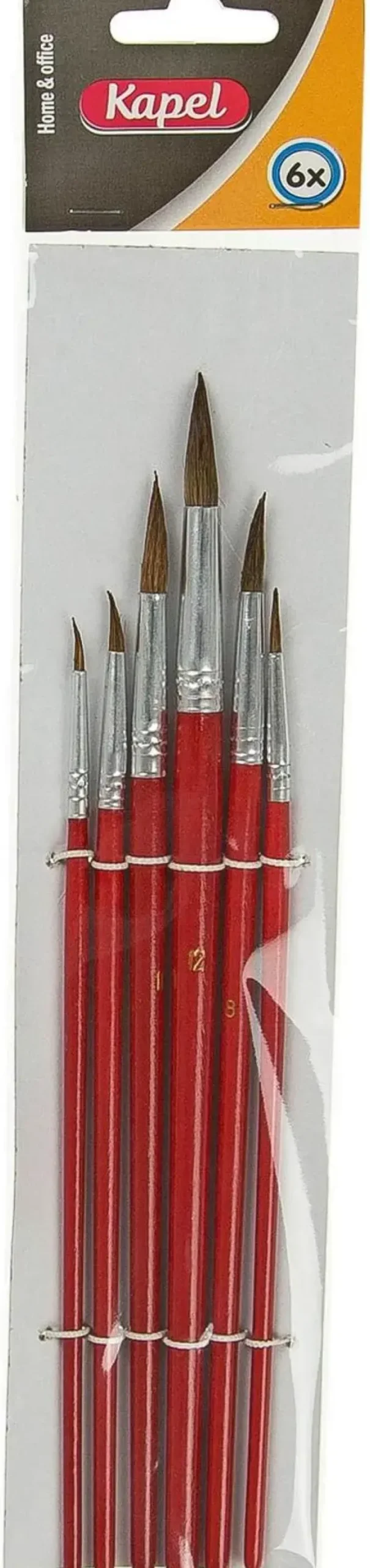 Pakkauksessa Erikokoisia Vesivärisiveltimiä. Koot 2, 4, 6, 8, 10 Ja 12.