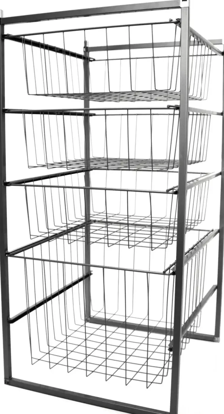 Kehikko, Jossa 3 Kpl 140 Mm Korkeita Koreja Ja 1 Kpl 285 Mm Korkea Kori. Vapaasti Seisova Koritorni Kaapin Sisään, Vaatehuoneeseen Tai Liukuovikaapistoon. Leveys 450 Mm, Syvyys 500 Mm, Korkeus 915 Mm. Väri Harmaa.