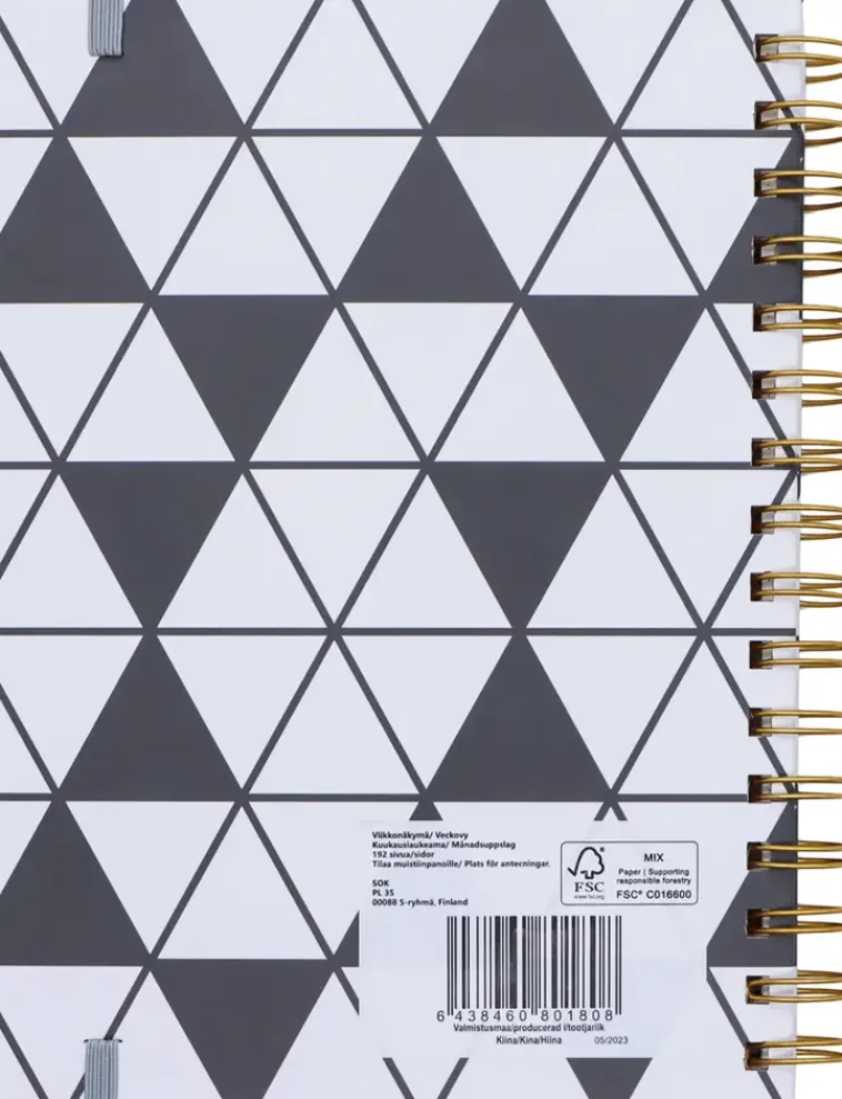 NNX Kalenterit>Poytakalenteri A5 Kierresidottu, Musta-Valkoinen