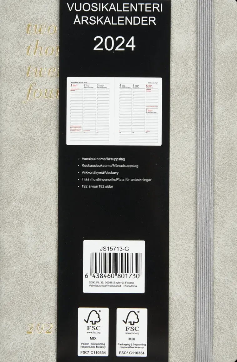 NNX Kalenterit>Taskukalenteri A6 Harmaa