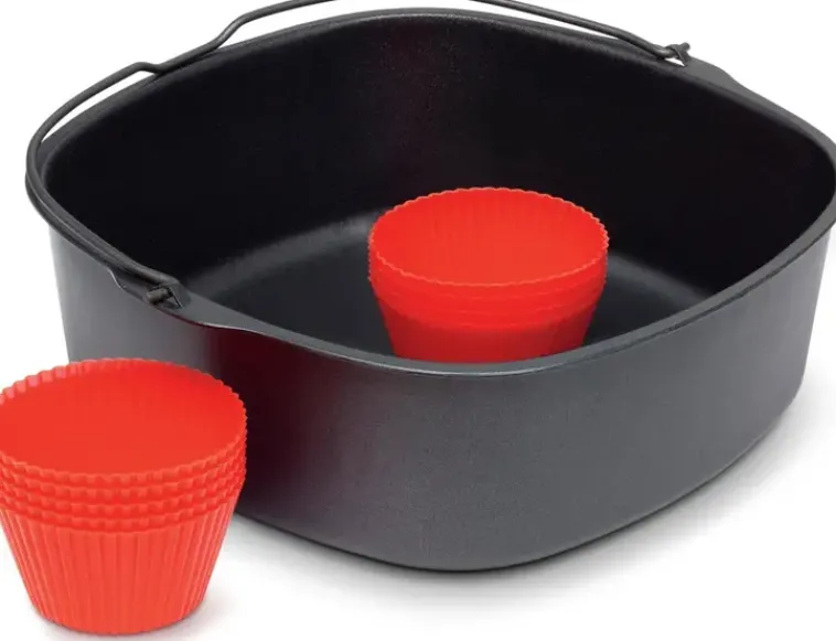 Philipsin Leivontasetti Antaa Mahdollisuuden Leipoa Ylellisiä Muffinsseja Ja Kuppikakkuja, Tai Ruokaisia Piirakoita Ja Leipää Airfryerilla. Settiin Sisältyy Pinnaltaan Tarttumaton Leivontavuoka Sekä Seitsemän Silikonista Muffinssivuokaa. Molemmat On Valmistettu Helppokäyttöisestä Ja Helposti Puhdistettavasta Materiaalista.
