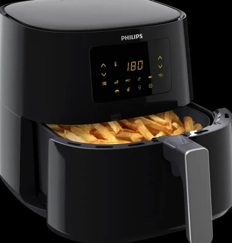 Uusi Philips Essential Airfryer Tarjoaa Loputtomia Ruoanlaittomahdollisuuksia: Friteeraa, Paista, Grillaa, Paahda Tai Jopa Lämmitä! Saat Aina Täydellistä Ruokaa Riippumatta Siitä, Mitä Aiotkaan Valmistaa. Philipsin Rapid Air -Tekniikka Ja Ainutlaatuinen Tähdenmuotoinen Pohja Pyörittää Kuumaa Ilmaa, Jotta Ruoan Pinnasta Tulee Rapea Ja Sisuksesta Mehevä Lähes Ilman Lisäöljyä. Philips Essential Airfryer Kypsentää Lempiruokasi Upean Rapeiksi Käyttäen Jopa 90 % Vähemmän Rasvaa. Philips Airfryer Xl On Suunniteltu Perheellesi: 1,2 Kilogramman Kori Ja 6,2 Litran Vuoka Selviytyvät Monenlaisista Aterioista. Valmista Jopa 5 Annosta Kerralla Perheellesi Tai Kavereillesi. Valmista Ruokaa Koskettamalla Painiketta. Esiasetetut Ohjelmat: Pakastetut Välipalat, Ranskanperunat Tuoreesta Perunasta, Liha, Kala, Kanankoivet, Kakku Ja Grillatut Kasvikset. Nauti Ateria Haluamanasi Aikana. Kun Valitset Lämpimänäpitotilan, Ruoka Pysyy Ihanteellisen Lämpöisenä Jopa 30 Minuuttia. Airfryerin Quickclean-Korin Tarttumaton Pinnoite Helpottaa Puhdistusta. Lisäksi Kaikki Irrotettavat Osat Ovat Konepestäviä. Ilmalla Friteeraaminen Ei Myöskään Tuota Tavallisen Friteerauksen Tavoin Hajuja Kotiisi. Valmista Airfryerilla Monipuolisia, Maukkaita Ja Terveellisiä Aterioita. Tutustu Koneen Aikaa Säästäviin Ominaisuuksiin, Kehitä Ruoanlaittotaitojasi Ja Valmista Upeita Aterioita Perheellesi Päivittäin.