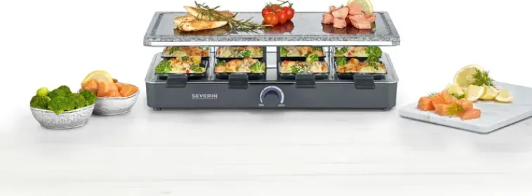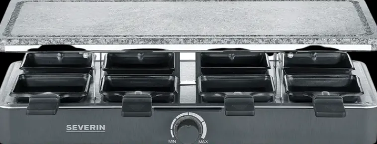 Kutsu Ystäväsi Mukavalle Illalliselle Raclette-Pöydässä. Täytä Raclettepannut Suosikkiaineksillasi Ja Anna Niiden Paistua Samalla, Kun Liha Kypsyy Paistopinnalla. Tässä Mallissa On Täysi Luonnonkivinen Paistotaso Ja 8 Raclettepannua, Joissa On Tarttumaton Pinnoite. Säädettävän Lämpötilan Ansiosta Voit Helposti Mukauttaa Lämmön Sen Mukaan, Mitä Haluat Valmistaa Paistinpannulla.