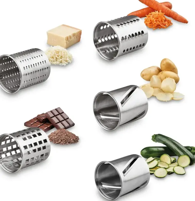Solis Slice &Amp; More -Vihannesleikkurilla Raastat, Viipaloit Ja Rouhit Ainekset Salaatteihin Ja Kasvisruokiin Tehokkaasti Ja Vaivatta. Helppokäyttöisen Raastimen Myyntipakkaus Sisältää Viisi Ruostumattomasta Teräksestä Valmistettua Huipputerävää Rumputerää. Leikkuurummut Ohueen Ja Paksuun Viipalointiin. Raastamiseen Ja Rouhimiseen Tarkoitettu Terä On Ihanteellinen Koville Aineksille, Kuten Juustoille, Pähkinöille Ja Suklaalle. Karkean Raastamisen Terä On Ihanteellinen Omenoille, Porkkanoille, Sellerille Ja Juustolle. Viides Rumpu Soveltuu Yleiseen Raastamiseen Sekä Keitetyille Pernoille Ja Vaikkapa Valkosipulille. Myyntipakkauksessa Myös Kaksi Kannellista Säilytyskoteloa, Joihin Kumpaankin Mahtuu 2 Leikkuurumpua.Laitteen Muoviosat Ovat Bpa-Vapaata Muovia Ja Laitteen Pinta On Tyylikästä Harjattua Terästä.Laitteessa On Vahva Ja Kestävä 350W Moottori Ja Kaksi Nopeusasetusta. Suuri Syöttöaukko (5,5 X 7Cm) Lisää Käyttömukavuutta. Säilytyspaikka Virtajohdolle Laitteen Pohjassa.