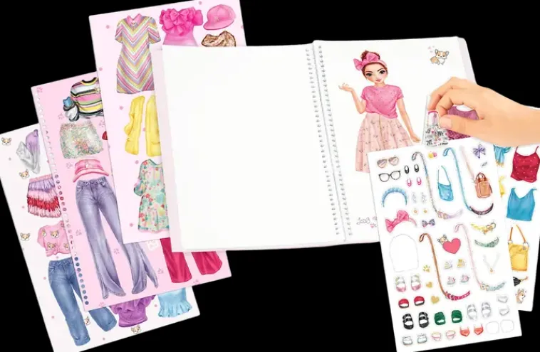Pue Topmodel Dress Me Up Tarrakirjan Sivuilla Esiintyville Malleille Trendikkäät Asukokonaisuudet Värittäen Ja Mukana Tulevia Kauniita Tarroja Käyttäen.