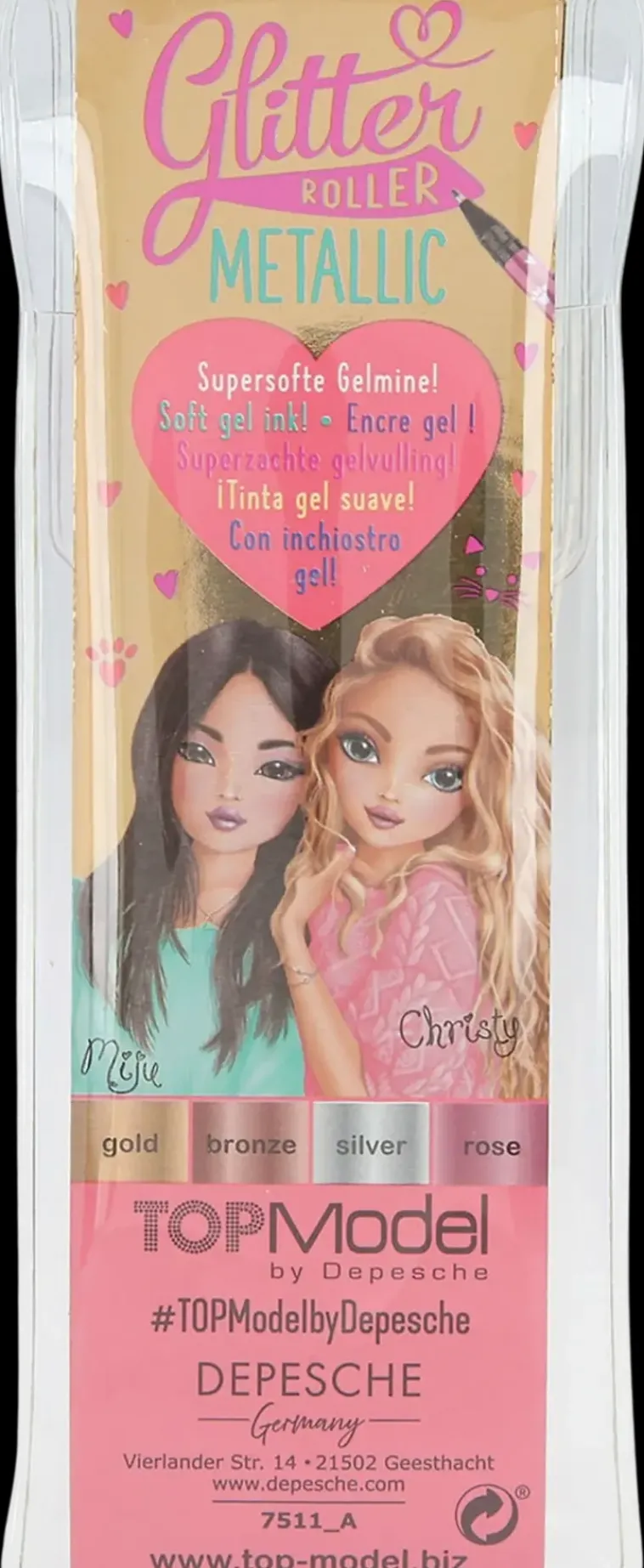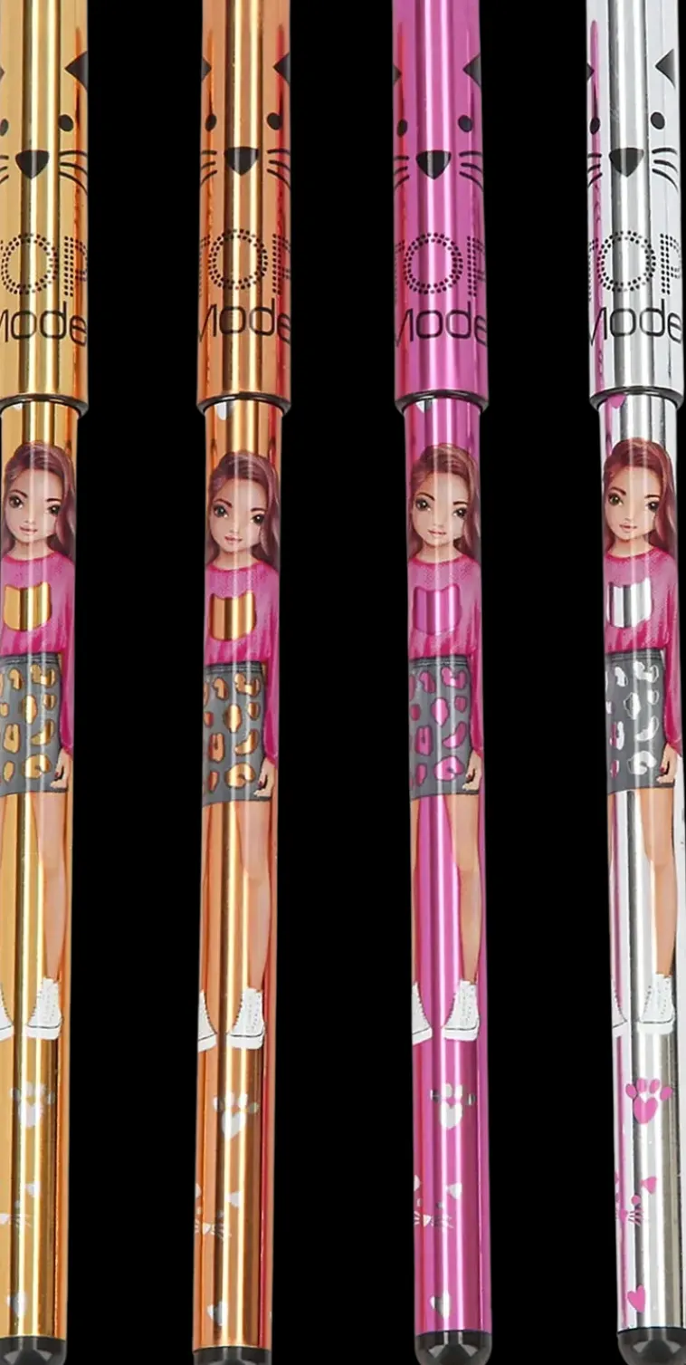 Topmodelin Kimaltelevat Metalligeelikynät! Paketissa Mukana Neljä Eri Väriä: Kulta, Hopea, Pronssi Ja Pinkki.