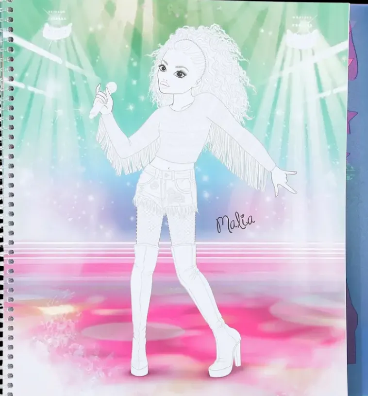 Topmodel Popstar Suunnittelukirja On Täynnä Rokkia Ja Poppia! Suunnittele Upeat Asut Topmodel-Tähdille Värittäen Sekä Mukana Tulevia Tarroja, Sapluunoita Ja Kuvioarkkeja Käyttäen.