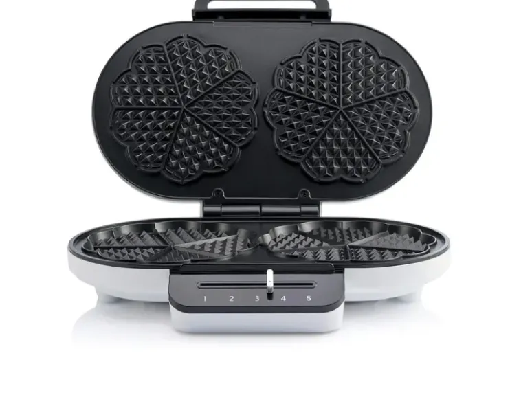 Puhtaan Valkoinen Kaksoisvohvelirauta 1200 Watin Teholla Paistaa Kaksi 16Cm Vohvelia, Joissa Kummassakin On 5 Vohvelisydäntä. Säädettävällä Termostaatilla (1-5) Voit Valita, Haluatko Vaalean, Kultaisen Vai Tumman Ja Rapean Vohvelin. Merkkivalo Ilmoittaa, Kun Vohvelit Ovat Valmiita. Kaksoispinnoitettujen Paistopintojen Ansiosta Rauta On Helppokäyttöinen Ja Helppo Puhdistaa. Takuu 2 Vuotta.