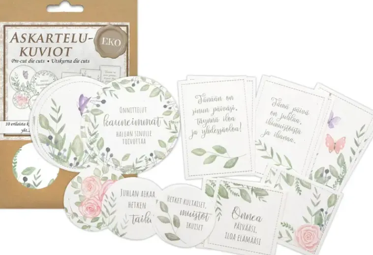Eko Askartelukuvio Askarteluun Ja Koristeluun. Pakkaus Sisältää 20 Kappaletta Kartonkisia Askartelukuvioita. Yhtä Kuosia On 2 Kappaletta Per Pakkaus. Tuotteen Valmistuksessa On Hyödynnetty Mahdollisimman Paljon Kierrätettyjä Materiaaleja. Tuotteessa Ja Pakkauksessa Ei Ole Käytetty Muovia.