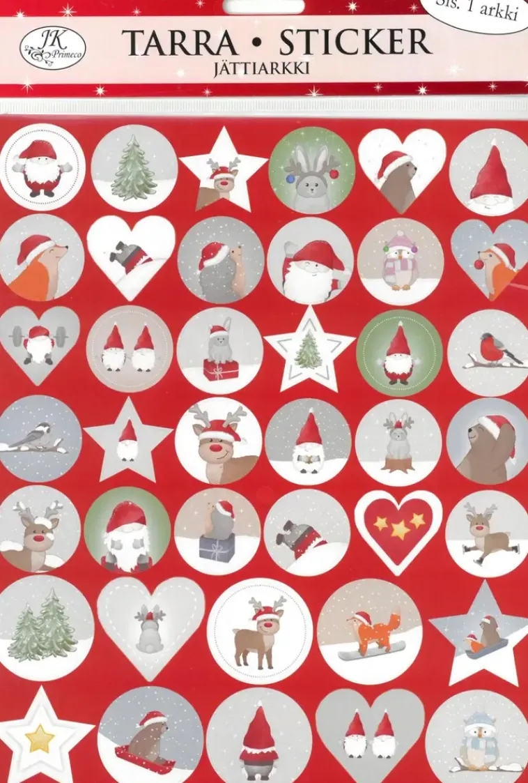 Jättitarrat Askarteluun Ja Koristeluun. Pakkaus Sisältää Yhden Arkin Erilaisia Paperisia Tarroja. Arkin Koko On N. 25Cm X 20,5Cm.
