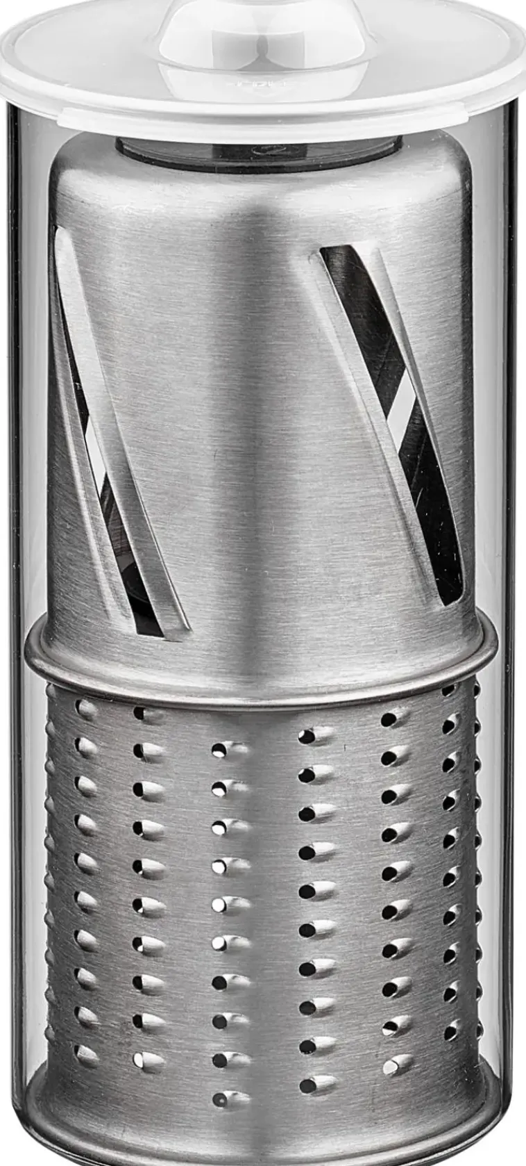 Solis Slice &Amp; More -Vihannesleikkurilla Raastat, Viipaloit Ja Rouhit Ainekset Salaatteihin Ja Kasvisruokiin Tehokkaasti Ja Vaivatta. Helppokäyttöisen Raastimen Myyntipakkaus Sisältää Viisi Ruostumattomasta Teräksestä Valmistettua Huipputerävää Rumputerää. Leikkuurummut Ohueen Ja Paksuun Viipalointiin. Raastamiseen Ja Rouhimiseen Tarkoitettu Terä On Ihanteellinen Koville Aineksille, Kuten Juustoille, Pähkinöille Ja Suklaalle. Karkean Raastamisen Terä On Ihanteellinen Omenoille, Porkkanoille, Sellerille Ja Juustolle. Viides Rumpu Soveltuu Yleiseen Raastamiseen Sekä Keitetyille Pernoille Ja Vaikkapa Valkosipulille. Myyntipakkauksessa Myös Kaksi Kannellista Säilytyskoteloa, Joihin Kumpaankin Mahtuu 2 Leikkuurumpua.Laitteen Muoviosat Ovat Bpa-Vapaata Muovia Ja Laitteen Pinta On Tyylikästä Harjattua Terästä.Laitteessa On Vahva Ja Kestävä 350W Moottori Ja Kaksi Nopeusasetusta. Suuri Syöttöaukko (5,5 X 7Cm) Lisää Käyttömukavuutta. Säilytyspaikka Virtajohdolle Laitteen Pohjassa.